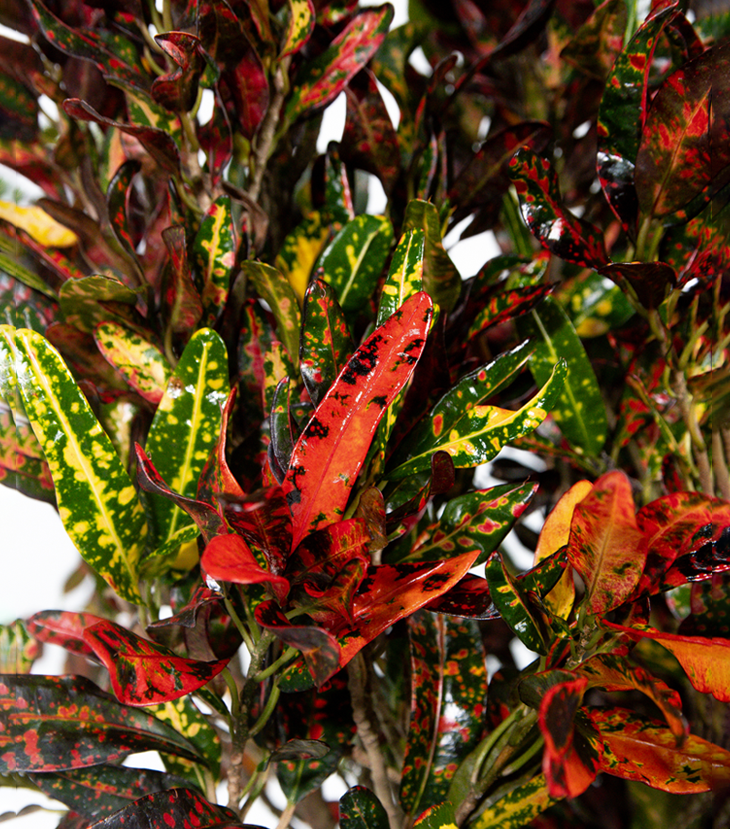 Conocido comúnmente como Croto Batik, es una planta tropical vibrante y popular, apreciada por sus hojas largas y estrechas con patrones intrincados de colores que recuerdan a la técnica de teñido textil "Batik", sus cualidades purificadoras de aire y su crecimiento moderado, lo que la hace excelente para contenedores, aunque necesita luz intensa y humedad constante para mantener sus colores vivos y evitar la caída de hojas.