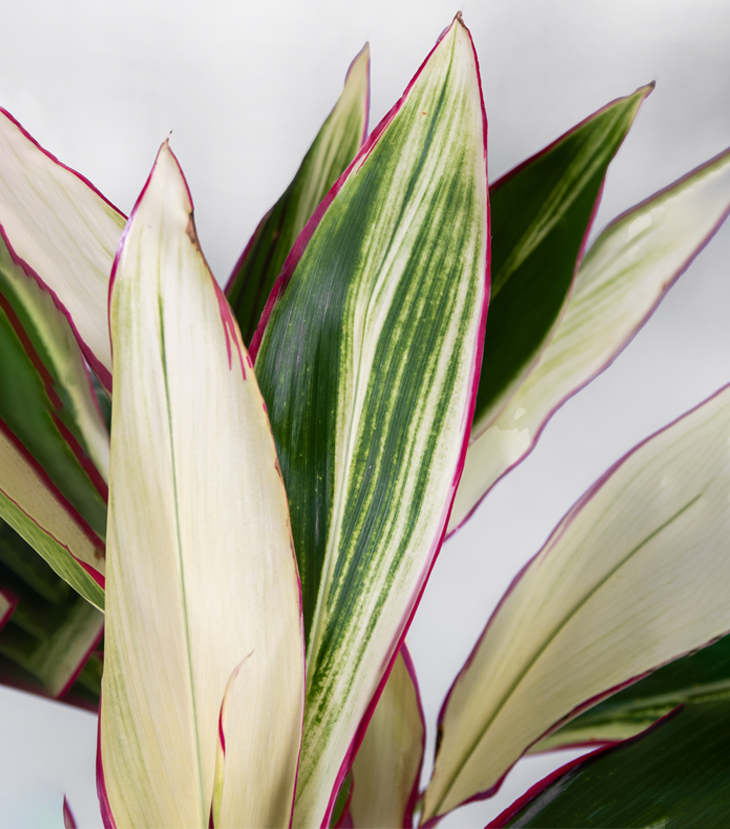 Es una planta tropical vibrante y popular, apreciada por sus hojas delgadas y elegantes con bordes de un intenso color rosa neón o fucsia, sus cualidades purificadoras de aire y su crecimiento vertical, lo que la hace ideal para añadir un toque de color exótico a espacios interiores bien iluminados.